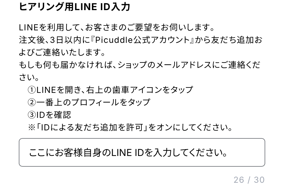 ヒアリング用のLINE IDを入力します